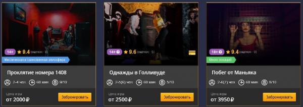 Тематика квестов - от детских и семейных до хорроров, детективов и мистики