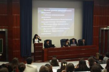 С докладами на тему «Инвестиционная привлекательность Армении на мировой арене» выступила студентка Финансовой Академии при Правительстве РФ Наре Бахшян. Тему «Иран, как стратегический экономический партнер Армении» раскрыла студентка Российского Университета Дружбы Народов Маргарита Абгарян. Работу на тему: «Двусторонние экономические отношения Армении и Грузии» представил учащийся Российского Экономического Университета им. Г.В.Плеханова Давид Скоян. «Современное положение экономического сотрудничества Армении со странами ЕС» проанализировала студентка Государственного университета - Высшая школа экономики Светлана Алавердян. «Экономические преимущества и недостатки открытия границ с Турцией» оценила студентка Московского Государственного Университета Екатерина Маркарян. С заключительным докладом выступил студент факультета международных экономических отношений МГИМО Карлен Гулян с темой: «Анализ товарной структуры внешней экономики Армении в 2006-2010 года».