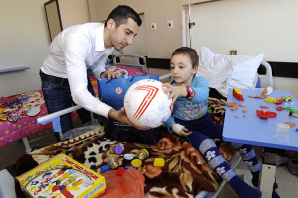 В рамках благотворительной акции, Мхитарян навестил всех детей клинического отделения центра, проходящих лечение от лейкоза, лимфогранулематоза, лимфомы и других болезней. Футболист подарил больным детям футбольные мячи и футболки со своим автографом.