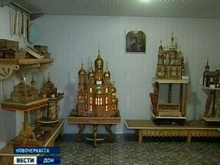 В одной комнате поместился весь православный Новочеркасск - Святогеоргиевская церковь, храм Константина и Елены и, конечно, Вознесенский Кафедральный собор. А еще миниатюрные копии жемчужин христианского зодчества - действующие храмы Москвы и Санкт-Петербурга. Автор филигранно выполненных из дерева работ - Артуш Антонян, или, как он представляется - дедушка Артем. Все эти шедевры - не итог большой творческой жизни, а результат лишь нескольких лет увлечения. Мастер всерьез взялся за создание мини-церквей после того как вышел на пенсию.