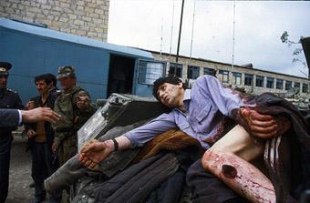 На снимке: раненый армянский милиционер. Как рассказывал автор снимка Алексей Рогов, в то время как он снимал, между военными и азербайджанцами шел спор, что делать с ранеными: азербайджанцы хотели везти их в Кировабад, а военные говорили, что раненых надо доставить в ближайший госпиталь или больницу (sumgait.info).