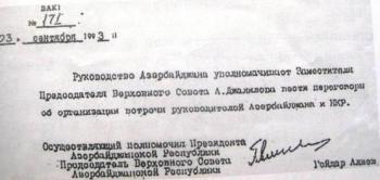 Мы сегодня много и правильно говорим о необходимости дипломатических усилий по признанию государственной независимости НКР, однако практически не вспоминаем тот факт, что именно Азербайджан является государством, президент которого первым в мире признал Нагорно-Карабахскую Республику. Однако, факты – упрямая вещь, и копия приводимого документа является наглядным подтверждением сказанному. При этом, заметим, что данный документ является далеко не единственным, в котором Гейдар Алиев собственноручно подписывается под обращением к НКР. Прошу читателей также обратить внимание на то, что именно указанный в письме Гейдара Алиева А. Джалилов – вице спикер парламента Азербайджана – подписал от имени Азербайджана Бишкекский протокол.