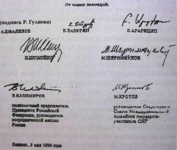 17 лет назад, 5 мая 1994 года, в столице Кыргызстана Бишкеке был подписан Протокол о бессрочном прекращении огня между Нагорно-Карабахской Республикой, Азербайджаном и Арменией. Спустя несколько дней руководители оборонных ведомств Армении, НКР и Азербайджана в совместном письме министерствам обороны и иностранных дел Российской Федерации выразили согласие обеспечить полное прекращение огня с 00 часов 01 минуты 12 мая 1994 года (ксерокопия письма прилагается).