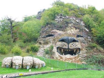 Скульптурная композиция льва, естественно вписанная в окружающий ландшафт, расположена на территории гостиничного комплекса «Цовин Кар»