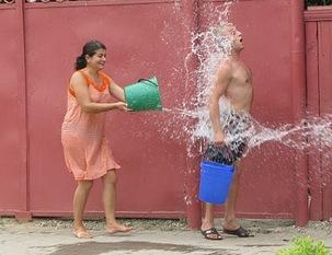 В последние дни июля на улицах Буденновска, в котором жара перевалила за сорокаградусную отметку, можно увидеть забавные сцены: молодёжь и взрослые, малыши и старики с азартом и с нескрываемым удовольствием обливали друг друга холодной водой. Вода льется из вёдер, из кружек, из бутылок и даже из садовых леек. Самые «продвинутые» вооружены водяными пистолетами!