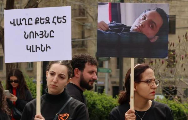 Вот уже сколько времени его одноклассники и их родители, общественные активисты и граждане борются за его освобождение. 12 апреля во дворе церкви Святой Анны прошла молчаливая акция протеста в поддержку 18-летнего Давида Минасяна. Молодые люди со связанными руками и заклеенными скотчем ртами стояли у храма в знак протеста против беспредела правоохранителей. Другие держали плакаты с надписями «Граждане РА беззащитны», «Свободу Давиду Минасяну», «Дайте спокойно помолиться в церкви» и др.