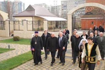 В Краснодаре на территории Армянской Церкви Сурб Ованес Аветаранич Бако Саакяна встречали Глава Епархии Юга России ААЦ Епископ Мовсес Мовсесян и руководители, действующих в Краснодаре армянских организаций. Президент НКР и сопровождавшие его лица, в числе которых был и Генеральный Консул Республики Армения в Ростове-на-Дону Арарат Гомцян, помолились в церкви, после чего в Резиденции Епархии провели беседу с Главой Епархии и руководителями армянских организаций.