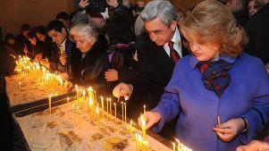 Находящийся с государственным визитом в России президент Армении Серж Саргсян встретился с благотворителями, спонсировавшими строительство нового Армянского церковного комплекса Москвы.