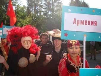 Ибо Карнавал был конкурсный, со множеством номинаций, на которые по принципу "Оскара" выдвигались по три претендента, и "Крылатый" был выдвинут в трех - лучшая работа художника, режиссера и лучшая постановка. Уже не говоря о том, что ереванский театр заявил о себе в первый же день. Открытие фестиваля ознаменовалось кукольным шествием, в котором Ереван оказался в желтой майке лидера.