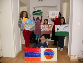 Воодушевление детей было очень велико. С помощью языка, рисования они раскрыли для себя совершенно иной мир. Начали чувствовать, понимать, что такое Армения. Из десяти участников работы пяти были отобраны и демонстрировались. Очень рада, что и мои дети участвовали. Младшая дочка, Минела, в первой возрастной группе заняла первое место.
