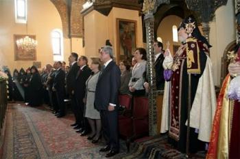 Справка. Гарегин II (Нерсесян) – действующий Патриарх и Католикос всех армян, глава Армянской Апостольской Церкви. 27 октября 1999 года после смерти Католикоса Гарегина I Национальный Церковный собор Армянской Апостольской Церкви избрал архиепископа Гарегина Нерсесяна 132-м Патриархом и Католикосом всех армян. Резиденция Верховного Патриарха всех армян – Первопрестольный Эчмиадзин. «Эчмиадзин» означает «сошел Единородный Сын Божий». Именно так был назван кафедральный собор и близлежащий монастырь. Святому Григорию было видение Единородного Сына Божьего. Он сошел с небес с золотым молотом в руке и, ударив по земле армянской, указал место построения первого кафедрального собора. Этот алтарь был впоследствии возведен на месте, где золотой молот Сына Божьего коснулся земли. Вокруг алтаря в 303 году и был создан кафедральный собор.