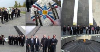 Покинув здание музея, члены Делегации совместно с руководителем фракции Парламента «Дашнакцуцюн» отправились к мемориалу Циценакаберд. Здесь они совершили церемонию возложения венка и цветов к Вечному огню, отдав дань памяти жертвам геноцида армянского народа.