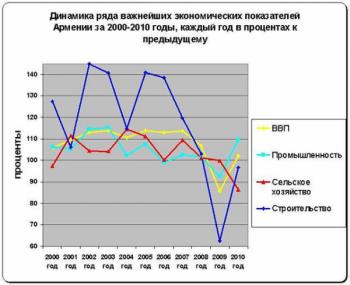 Неблагоприятные для Армении тенденции, связанные с последствиями мирового кризиса, особенно обострились в 2009 году. Важнейшим признаком кризиса в экономике страны явился отмеченный выше спад в ВВП. Кроме этого, резко сократился объем экспорта – на 34,0%, а также импорта – на 25,3%.
