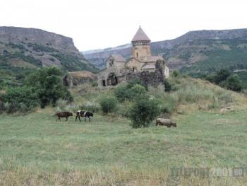 Итак, село Куртан. Население 4 тысячи человек — и 8 магазинов. Расположен населенный пункт на высоте 1300 метров над уровнем моря. Выходишь на окраину Куртана, и твои глаза становятся шире от восторга и, как ни странно, от страха высоты — перед тобой пропасть глубиной 100 метров. А внизу, в ущелье — храм Хневанк, сооруженный еще в седьмом веке. С края бездны видны другие села — и кажется, что они совсем близко, а на самом деле до них несколько десятков километров. И все по горным дорогам, ходить и ездить по которым — «экстремальное занятие». И если в городе Горис эти дороги асфальтированы, то в Куртане — горная «гравийка». Выглядываешь из бокового окна авто, а внизу, в лучшем случае, сотня метров.
