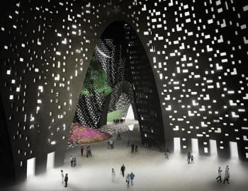 Такое название искусственный «холм» площадью 85 тысяч квадратных метров получил не случайно: многочисленные отверстия неправильной геометрической формы, подобно пчелиным сотам, покроют поверхность комплекса, издали напоминая один из старинных армянских монастырей, высеченных в скалах, или же традиционное армянское кружевное рукоделие.