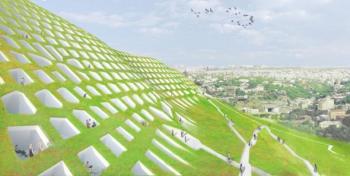 Часть «биоморфной» поверхности искусственного холма будет поглощать солнечную энергию, но основная площадь покроется живой изумрудной травой или важными сельскохозяйственными культурами. Растения, в свою очередь, создадут жизненную среду для насекомых и, вероятно, нескольких видов птиц.