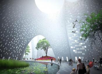 Памятуя о проблеме плотной застройки центра в ущерб зелёным насаждениям, Форрест Фултон нашёл простой и гениальный способ поймать двух зайцев одновременно. Вместо того, чтобы громоздить друг на друга многочисленные небоскрёбы, отбрасывающие тень на город, дизайнер соединил вместе город и ландшафт. Долой «запечатанные» стёклами здания!