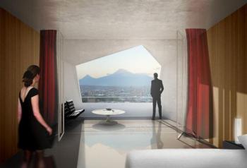 Эти «окна» превратят внутренние коридоры в открытые террасы, обеспечат естественное освещение и вентиляцию, а так же откроют жителям и посетителям потрясающие виды на горные цепи, окаймляющие город с трёх сторон.