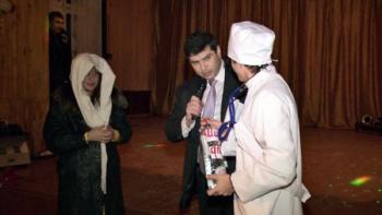 Хозяин дает добро. Дед зовет невесту: «Гилизар входи». Невеста входит, становится рядом с дедом. Музыканты играют веселые мотивы. Все танцуют. Вдруг, забегает араб и убивает деда-жениха и убегает. Невеста рыдает над своим любимым и говорит: «Ай, вах, нареченного моего зарезали, сделайте что-нибудь, верните его». Зовут доктора, тот спрашивает: «Что случилось?». Хозяин: «Гостя моего, жениха, подлый араб зарезал». Доктор отвечает: «Есть у меня живая вода, могу его воскресить, но очень дорогая вода».