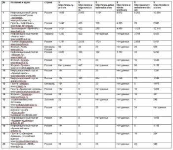 В графах с указанием показателей ТИЦ, PR и AR в первой строчке указан сам цифровой показатель, а во второй место занимаемое сайтом в соответствии с данным показателем. Наименования сайтов в таблице расположены в соответствии с показателем ТИЦ, как самым популярным среди веб-мастеров и рекламодателей на постсоветском пространстве. Все цифровые показатели, представленные в данной таблице, рассчитаны 31 января и со временем могут измениться. Показатель «Нет данных» говорит о том, что сайт или расположен на бесплатном домене или его показатель крайне низок.