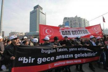 «Сегодня Таксим, завтра Ереван. Мы внезапно придем к вам ночью», - написано на этом транспаранте Националистической партии Турции. Могли бы и не писать: шапочки на их головах не менее красноречивы, чем надпись на транспаранте. Не ново и то, что турок готов заявиться к нам только ночью. Важно другое – оружие, с которым турок придет. Если это будет топор, то нам действительно стоит остерегаться, ибо против топора мы бессильны. Но если это будет стрелковое или иное современное оружие, что ж, хотя и принято говорить «милости просим», собственно милости обещать не могу. На скалистой армянской земле найдется немало места для массовых захоронений непрошеных тварей.