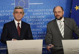 Находящийся с рабочим визитом в Бельгии президент Армении Серж Саргсян сегодня встретился с председателем Европейского парламента Мартином Шульцем. По итогам встречи состоялась совместная пресс-конференция президента Армении и главы Европарламента.