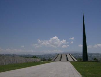 Однажды мне удалось побывать в Мемориальном комплексе «Цицернакаберд», который посвящен жертвам геноцида армян в 1915 году. Была такая веха в истории трудных взаимоотношений Армении и Турции, когда последние «освобождали» свои исторические территории, этот спор и поныне не дает наладить какие-либо контакты между Арменией и Турцией. Мемориальный комплекс армяне сделали замечательный, мне провели индивидуальную экскурсию (!) на русском языке и к тому же бесплатно. Экскурсии доступны на многих языках! Геноцид армян признан многими странами мира и международными организациями, в знак скорби вокруг комплекса высажена алея, где иностранные государственные деятели сажают деревья в память о жертвах геноцида, присутствует в парке и ель, посаженная Кучмой в 2002 году. Мемориал считается Меккой для всех армян.