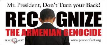 Сообщение на щитах в Уотертауне – это послание к президенту Обаме, призывающее его выполнить свое обещание, данное в ходе своей кампании 2008 года - признать Геноцид армян.