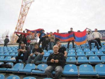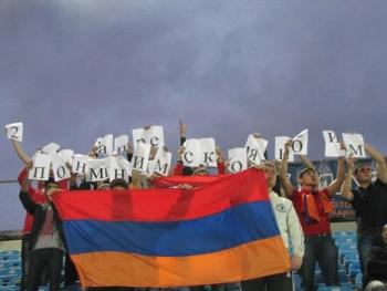 В ходе матча первенства России по футболу между командами премьер-лиги «Ростов» и «Краснодар», который состоялся 16 апреля в Ростове-на-Дону, армянская молодежь организовала небольшую акцию в память о жертвах Геноцида армян в Турции. Как сообщает Информационный Центр газеты армян России «Еркрамас», после того как на поле в составе «Краснодара» вышел форвард сборной Армении Юра Мовсисян, наши соотечественники подняли армянский триколор и выложили распечатанными на листах формата А4 большими буквами послание: «24 апреля. Геноцид армян. Помним и скорбим».