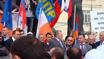 На митинге выступил и глава Либерально-демократической партии России Владимир Жириновский, заявивший, что Турция, как правопреемница Османской империи, должна материально возместить Армении вред за геноцид армян в 1915 году. «Прошлое не вернуть, но за прошлое можно наказать, призвать к ответственности, добиться принятия международных документов», - сказал Владимир Жириновский. «Турки уже начинают уезжать из Германии, не получился «мультикультурализм» в Германии, где больше всего турок, изменяется отношение европейцев. Я думаю, в ближайшие годы они поймут, что нельзя Турцию использовать как пугало для соседей, тем более, что её никто не боится. И в этом смысле, постепенно, можно будет подготовить и добиться принятия каких-то юридических документов о компенсации. Людей не вернуть, но определенную компенсацию территориями или деньгами, в разной форме, можно будет добиться от Турции. Ибо весь мир знает, что это было. Свидетели все есть, это было так такой акт, который запомнила вся Европа ещё 100 лет назад», - также добавил он.