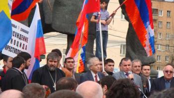 Как сообщает Информационный Центр газеты армян России «Еркрамас» со ссылкой на российские СМИ, из Марьиной рощи многие участники молебна отправились к площади Краснопресненской заставы (метро «Улица 1905 года»), где в этот день также традиционно проводится митинг. Его организаторами и участниками также выступили представители армянской общины.