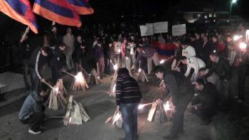 Акция началась с символичного действия, когда участники траурных мероприятий, неся плакаты, лозунги, зажженные поминальные свечи и факелы, флаги России, Армении, иностранных государств, а также международных организаций, признавших и осудивших геноцид армянского народа, подойдя к месту митинга у церкви «Сурб Аствацацин», от факелов и поминальных свечей зажгли 12 больших костров, символизирующих 12 областей, где было совершено это чудовищное преступление перед человечеством. На угольки от костров школьниками и студентами был просыпан благовонный ладан, который символизировал присутствие ангелов и чистые души безвинно убиенных жертв Геноцида.