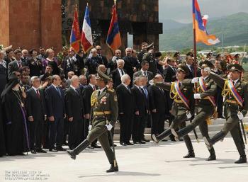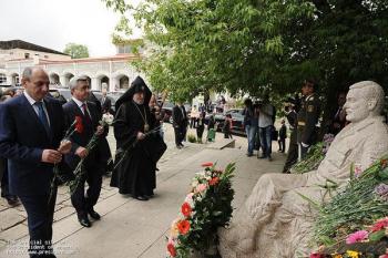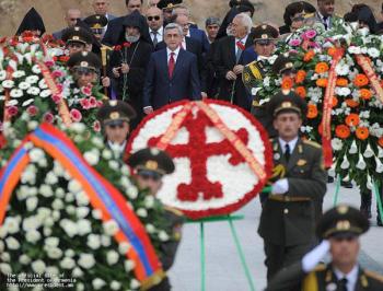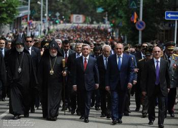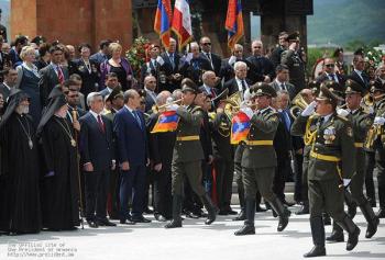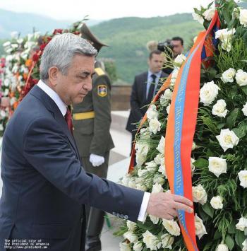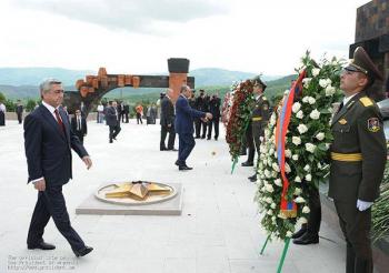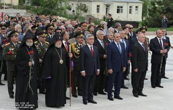 Президенты двух армянских республик, а также Католикос Всех Армян Гарегин Второй, Глава Арцахской Епархии ААЦ Српазан Паргев и другие официальные лица, посетили мемориальный комплекс Степанакерта и возложили венки и цветы к памятнику погибшим во Второй мировой войне и могилам воинов, павшим в Арцахской освободительной войне.