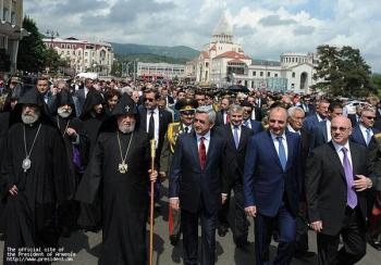 В праздничных мероприятиях также приняли участие второй Президент НКР Аркадий Гукасян, руководство Республики Арцах, правительственная делегация из Республики Армения, представители Диаспоры, гости из-за рубежа.