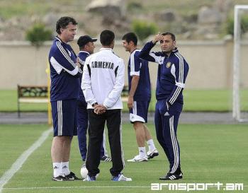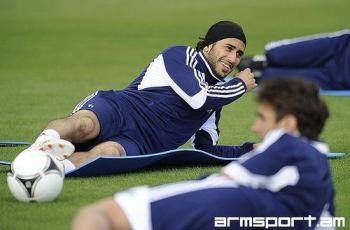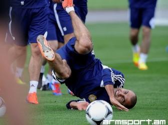 После первой открытой тренировки сборной на вопросы журналистов ответил нападающий Юра Мовсисян.