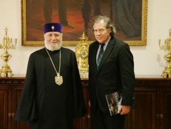 Его Святейшество Верховный Патриарх и Католикос Всех Армян Гарегин II и министр иностранных дел Уругвая Луис Алмагро Лемес