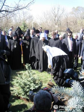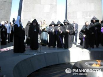 Вместе с предстоятелем РПЦ цветы к Вечному огню возложили патриарх и католикос Гарегин Второй, епископат и представителей общественности. У Вечного огня духовенство Армянской апостольской церкви совершило краткое заупокойное богослужение, после чего священнослужители РПЦ пропели "Вечную память".