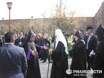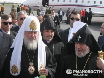 Патриарх Московский и всея Руси Кирилл по приглашению главы древней Армянской Апостольской Церкви - Верховного Патриарха и Католикоса Всех Армян Гарегина Второго - совершил 16-18 марта визит в Армению. В аэропорту Звартноц патриарха Кирилла встречали Патриарх и Католикос Всех Армян Гарегин Второй и двенадцать епископов Армянской апостольской церкви, министр образования и науки, послы России, Украины, Белоруссии, Туркмении, Казахстана, Литвы.