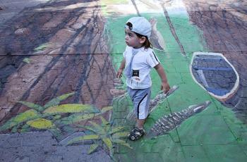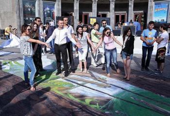 Это первая картина 3D в столице Армении, которая нарисована с использованием специальной техники искажения и наклона, что позволяет создать иллюзию объемной картины.
