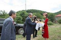 Следующая встреча состоялась в общине Газарапат, расположенной в северной части района. Это бывшее армянское село Алигули. До 1920 года оно было армянским, но после многочисленных нашествий турок и азеров было захвачено. Во вновь обретшем армянский облик селе на встречу с кандидатом в президенты пришли также жители соседних сел Гохтаник, Драхтадзор, Гандза. Жители с хлебом-солью встречали действующего президента страны и сопровождавших его лиц. Были возложены цветы к хачкару, установленному в память жертв погромов в Алигули, совершенных турками в 1905 году. Затем Бако Саакян поговорил с жителями о задачах общины, отметил важность ремонта дорог. Кстати, один участок дороги уже отремонтирован, и работы продолжаются. К числу серьезных задач села относятся жилищное и школьное строительство, сельское хозяйство. В течение прошедших пяти лет властями были допущены промахи и упущения, которые должны быть исправлены. В своем выступлении житель села Гохтаник Сергей Петросян, который является отцом 15 детей и имеет 17 внуков, заверил президента, что его дети никогда не уйдут отсюда, потому что это исконно армянские земли.