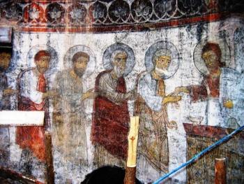 Тем удивительней, что цвета так и не поблекли, не потеряли яркости на протяжении долгих столетий. Ведь использованные здесь краски из натуральных красителей были такие же, как и по всей Армении: красный цвет – из «вордан кармира», изготовленного из эндемического корневого червя, распространенного в Араратской долине, зеленый цвет – из железной охры, синий цвет – из чернильного орешка, краски делались из шафрана, бессмертника, из зеленой ореховой скорлупы... Можно, конечно, приписать дело и некой мистике, особому покровительству Кобайру со стороны то ли природы, то ли высших сил. Ведь, как гласит местная легенда, в пещере, чуть ниже церкви, похоронена грузинская царица Тамара. Она так и называется – пещера царицы Тамары.
