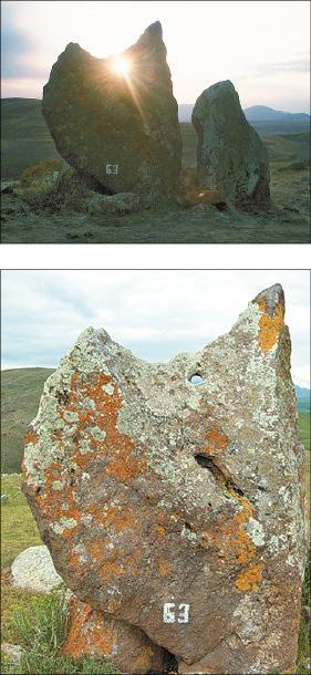 То же самое и в отношении наших Зорац карер: как возвести столь сейсмостойкий каменный комплекс с четким геометрическим расчетом, с тщательно отшлифованными отверстиями?.. Расположение камней тоже отнюдь не случайно: каждый камень занимает свое четкое и определенное место. Не случайно и направление просверленных в нем отверстий: каждое из них направлено в определенную точку. Этот каменный комплекс, по мнению специалистов, представляет собой обсерваторию или, скорее всего, и обсерваторию тоже. И каждый камень, каждое отверстие здесь ориентированы на определенное небесное тело или определенную точку неба.