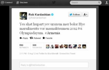 На своем микроблоге в Twitter Роб Кардашян также написал, что он гордится всеми армянскими спортсменами.
