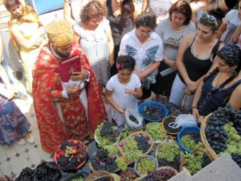 В долгожданный день, отмеченный в календаре нынешнего года 12 августа, прихожане, поместившие виноград нового урожая в праздничную корзину, отправились в церковь Св.Филлипоса в Ташкенте на празднование одного из пяти главных праздников Армянской Апостольской церкви - Мариам Аствацацни Верапохумн. Торжественную литургию проводил настоятель ААЦ в Узбекистане Тер Гарник Лорецян, а виноград оставался «запретным» плодом до того момента, когда священник завершил ритуал под названием «Хахохи орнутюн».
