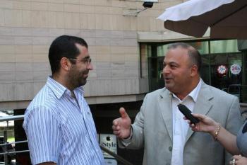 Руководитель ансамбля «Арин-берд» Алекс Дноян и первый вице-президент Союза армян Украины Ашот Аванесян дают интервью киевской газете Арагац