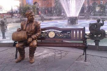 Бронзовые памятники великому армянскому поэту Егише Чаренцу и легендарному артисту Фрунзику Мкртчяну установлены на площади имени Шарля Азнавура в центре Еревана. Памятники выполнены в человеческий рост из глины, покрытой бронзой. По замыслу автора, скульптора Сурена Мелконяна, Чаренц и Мкртчян «сидят» на обычной скамейке, которые установлены по всей столице.