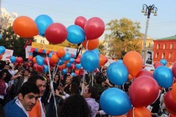 21 сентября на Площади Революции, в самом центре Москвы, в рамках Ярмарки «Золотой гранат», в честь празднования Дня Независимости Армении, Ассоциация Армянской Молодежи Москвы (ААММ) устроила массовую акцию. Как сообщает Информационный Центр газеты армян России «Еркрамас» со ссылкой на Департамент СМИ и PR AАММ, ровно в 18.00 в воздух были запущены 500 воздушных шаров в соответствии с палитрой цветов армянского флага. Каждый желающий мог написать на листке бумаги свои пожелания Армении, которые были привязаны к ленте шара и пущены в воздух.
