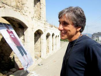 Ара Ошакан из США представляет фотопроект "Переселение". Он развесил фотографии жителей Шуши в одном из зданий на центральной улице города, разрушенной в ходе карабахской войны. Автор сообщил, что специально для реализации этой идеи он приезжал летом в Шуши.