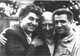 На снимках: Эдуард Мирзоян с Арно Бабаджаняном; с Мстиславом Ростроповичем и Александром Арутюняном