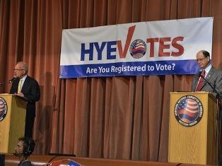 Более 300 членов общины, среди которых много не определившихся избирателей, собрались в зале армянской школы в Энсино, чтобы послушать позиции и предложения двух уважаемых конгрессменов.